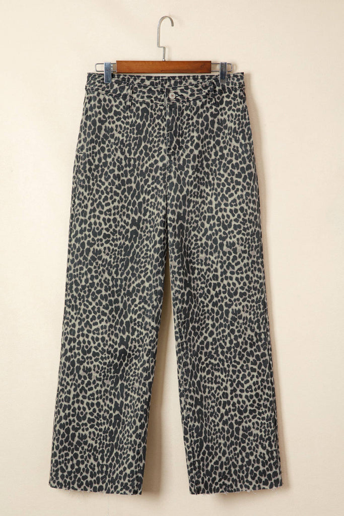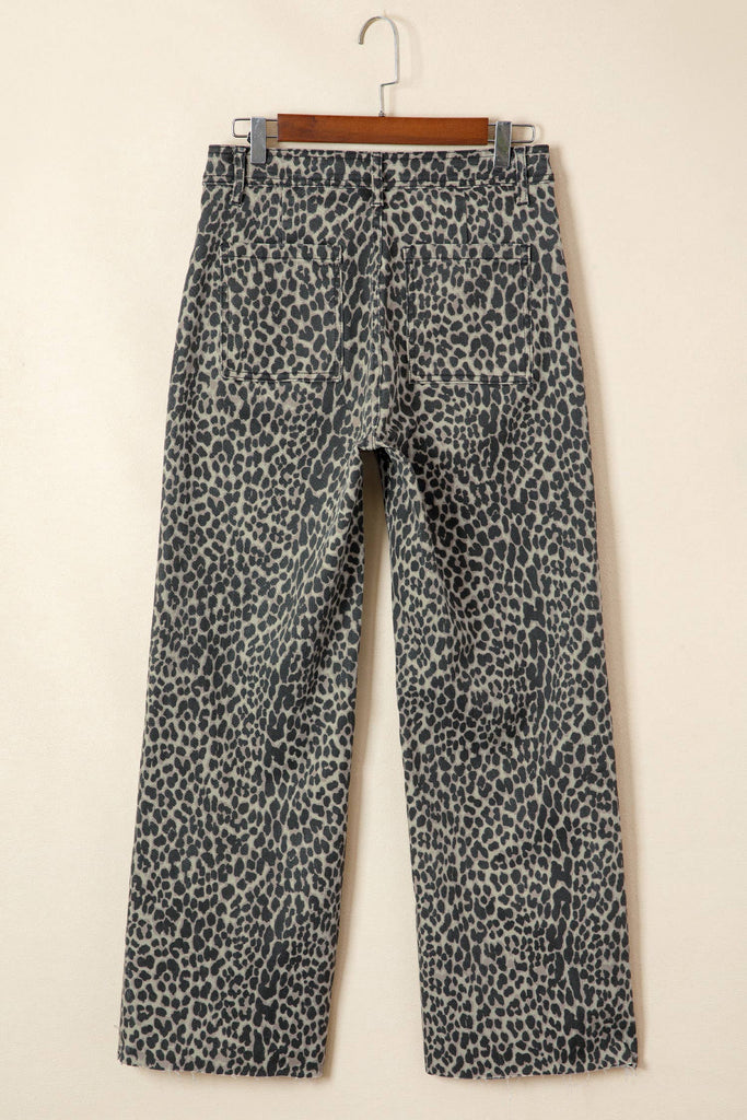 Rock a look that commands attention with these Leopard Wide Leg High Waist Jeans. The bold leopard print delivers instant edge while the high waist cinches your midsection for a flattering silhouette. Wide legs flow into a dramatic, elongated line that turns heads without sacrificing comfort. Perfect for anyone ready to make a style statement that's equal parts fierce and fabulous.