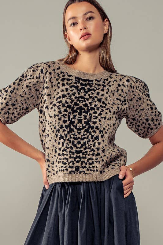 Add a wild touch to your wardrobe with this Animal Coded Short Sleeve Knit Top. Crafted from ribbed knit fabric, it offers a comfy, stretchy fit that hugs your shape just right. The playful animal print adds a fun, fierce vibe, while ribbed trim details bring a polished finish. Perfect for pairing with your favorite jeans or skirts, this top turns everyday dressing into an adventure.