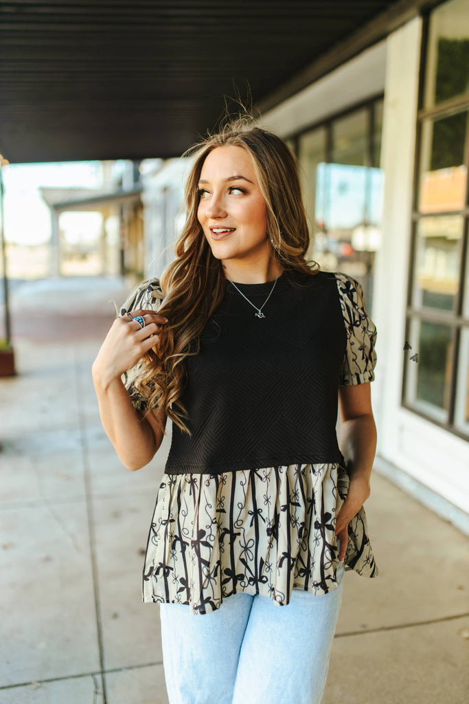 Introducing the Broken Bow—a charming quilted top that's anything but broken! This playful piece features puffy sleeves that add a touch of whimsy, a delicate bow detail at the neckline, and a ribbon tie-back that lets you customize your fit. The quilted body provides texture and dimension while keeping things cozy. Perfect for adding personality to your everyday wardrobe, this top pairs effortlessly with jeans, skirts, or trousers for a look that's equal parts sweet and sassy.