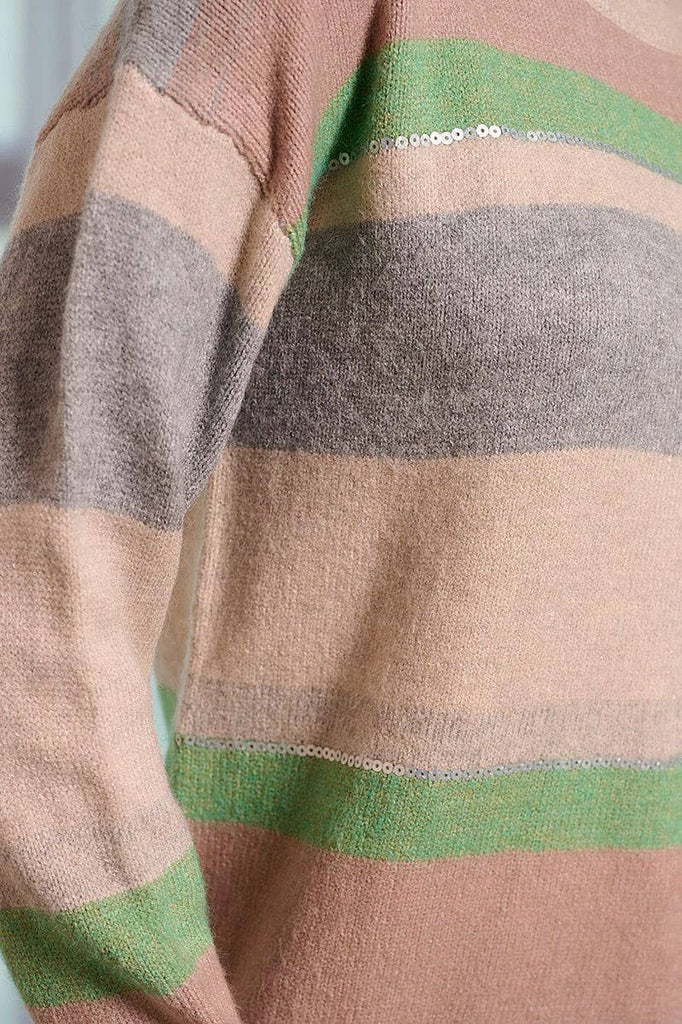 Striped Color Block Sweater with Sequins