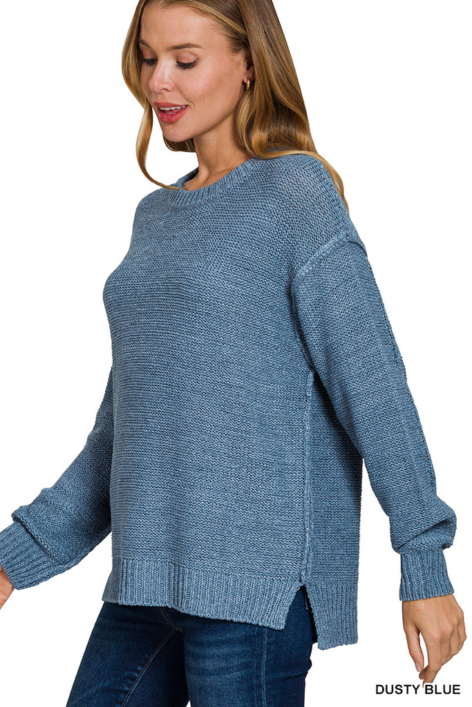 Crewneck Sweater with Exposed Seams in Dusty Blue