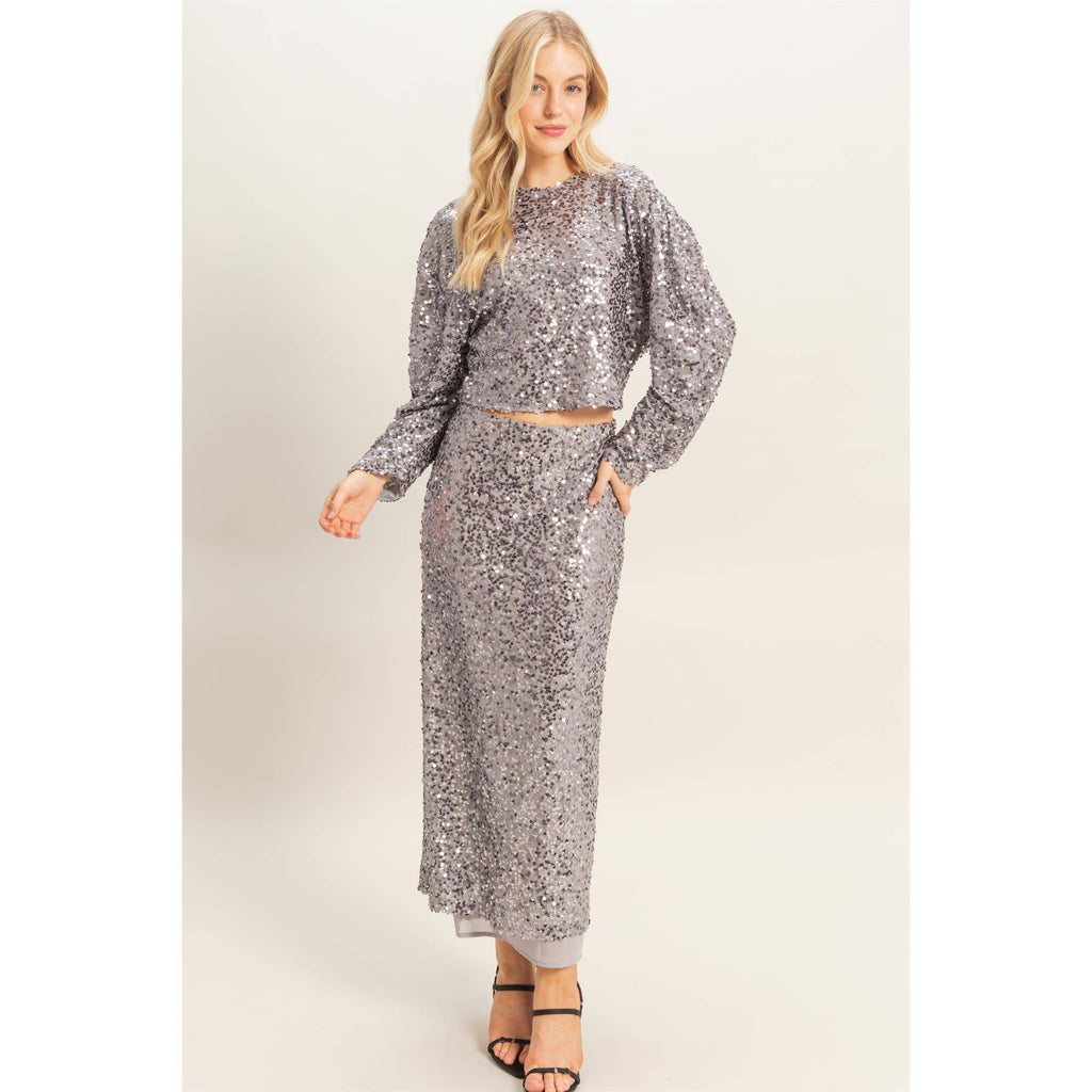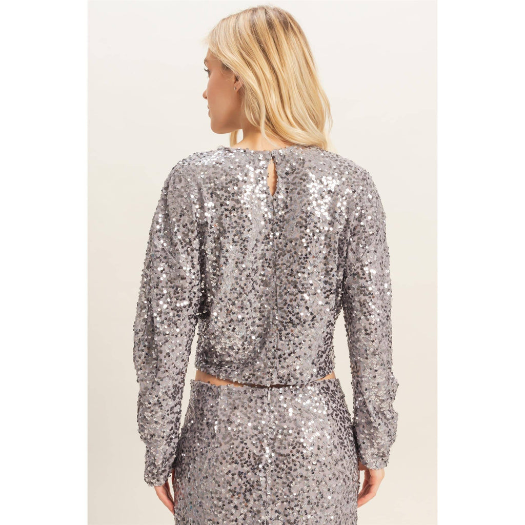Turn heads and light up the room in this eye-catching sequined long-sleeve top. Packed with personality and sparkle, it's your go-to piece for making a statement at any celebration. The thoughtfully tailored cut hugs you in all the right ways, while thousands of shimmering sequins catch the light with every move. Whether you're dancing the night away or stealing the spotlight, this top delivers glam without the fuss.