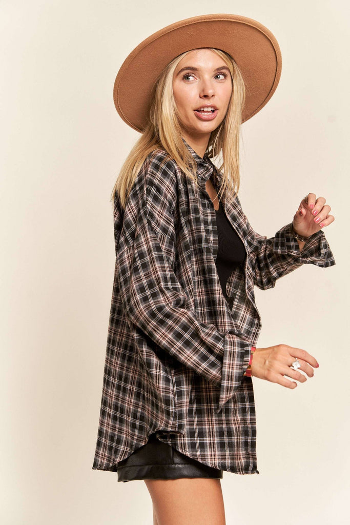 Throw on this button-down plaid tunic shirt and you're ready for whatever the day throws your way. Classic checkered pattern meets modern comfort in a piece that works just as hard as you do—whether you're running errands, grabbing coffee, or keeping it casual at the office. Functional pocket keeps your essentials close, while the relaxed fit makes it your new go-to for everyday style that actually feels good.