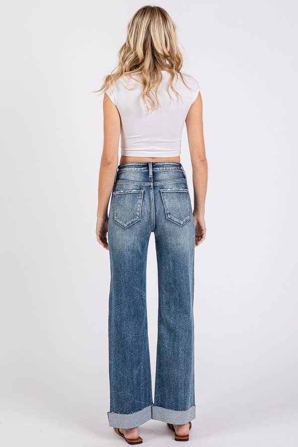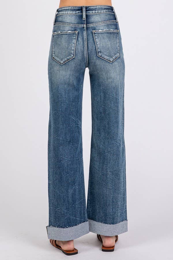 These aren't your grandma's jeans—though she might want to borrow them. The Petra Cuffed Wide Leg Jean brings that effortless, vintage-inspired vibe with a modern twist. High-rise cut flatters your silhouette, while the 2" single cuff with raw edge hem adds just the right amount of edge. Classic button closure, zip fly, and five-pocket styling keep things practical. Pair them with anything from cropped tees to oversized blazers and watch the magic happen.