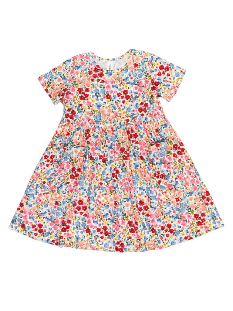 Spring Pattern Little Girls Pocket Dress in Multicolor Floral