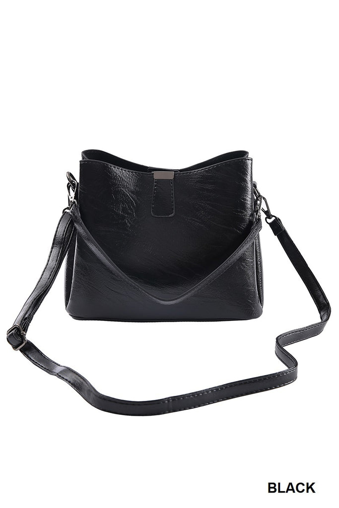 Take on the day with style and compassion with our Vegan Leather Bucket Bag. Made with soft and luxurious vegan leather, this versatile bag features removable and adjustable shoulder straps, perfect for any on-the-go lifestyle. The spacious main compartment and two inner compartments with magnetic clasps keep your belongings organized and secure. Vegan never looked so chic!