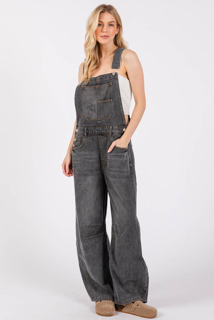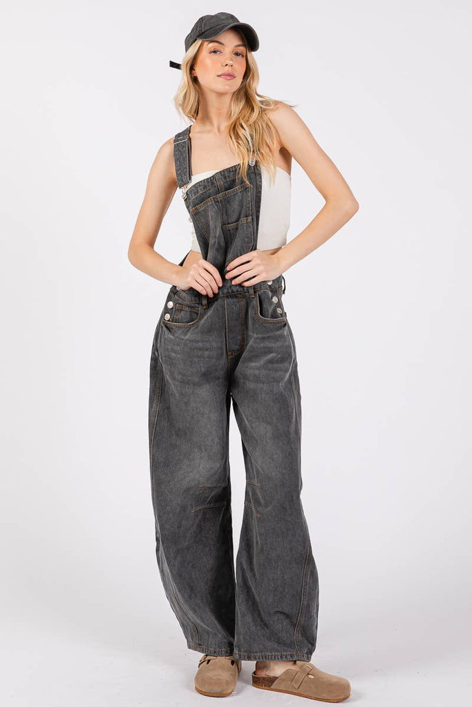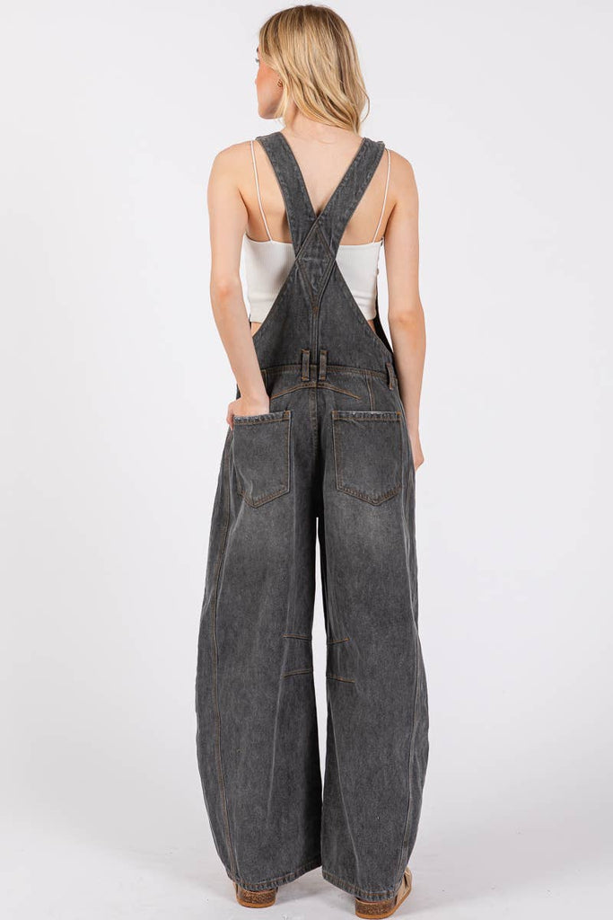 Washed Black Denim Overall